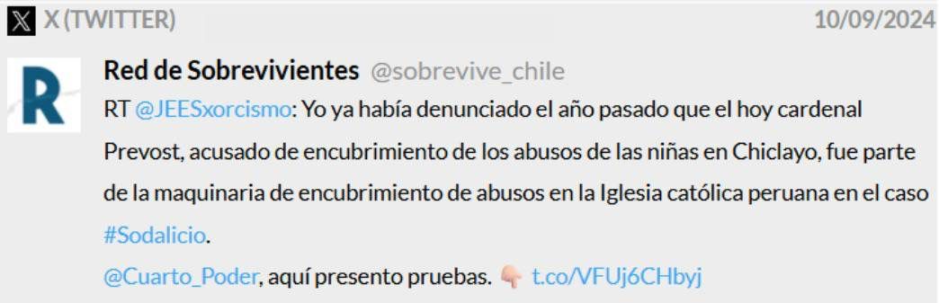 Sería conveniente que aclare como pasó el entonces cardenal Prevost de encubridor del Sodalicio a su candidato favorito al papapdo y por qué borro estos post. Este cambio de postura no es nuevo en Escardó. Durante el papado de Francisco, también se presentó como un aliado en la lucha contra el Sodalicio, celebrando la disolución de la organización como un “legado histórico”, a pesar de haberlo acusado previamente de ser un encubridor. Esta dualidad evidencia un patrón: Escardó adapta su discurso según la conveniencia, buscando capitalizar la atención mediática y el respaldo de figuras de autoridad. Su capacidad para pasar de la confrontación a la alabanza, eliminando evidencias de sus críticas pasadas, refleja un narcisismo que prioriza su imagen pública sobre la coherencia o la verdad.